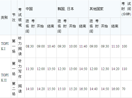 ※ 中国的TOPIK II考试在13:00开始