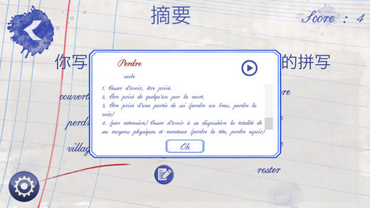 同样是提高拼写和语法的APP,但是这个可以让你学会更多的新词汇。有400多个单词测试题和理论知识复习。还可以通过Vos erreurs里查看自己的拼写错误,从而加强记忆。